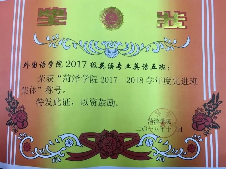 2017级本科五班是一个团结友爱的班集体,我们班级内同学积极向上,积极参加院系以及院校的各种活动,并取得优异成绩。班内同学在院学生会16人,社团及组织20余人,积极为院系工作作出贡献,也随时为外院建设工作努力着。在校期间获得伟德victor1946先进班集体以及优秀班集体,学风建设月期间优秀班集体,伟德victor1946十佳团支部。这使得我们更加的有责任感,我们会不骄不躁,继续优秀着。