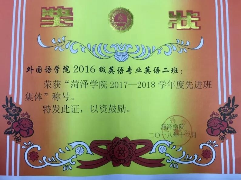 2017级英语教育二班是一个拥有32名成员的班集体。在这个温暖的大家庭中,每个人都在尽心尽力的为班级奉献,为这个集体增光添彩。在2017——2018学年,我们班在“读书节”活动中,荣获“书香班级”称号。在“宿舍安全知识竞赛”中获得三等奖等等。32名同学一条心,同学们也积极参加学校和学院开展的各项活动,为班级争光添彩。