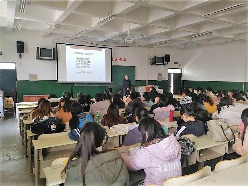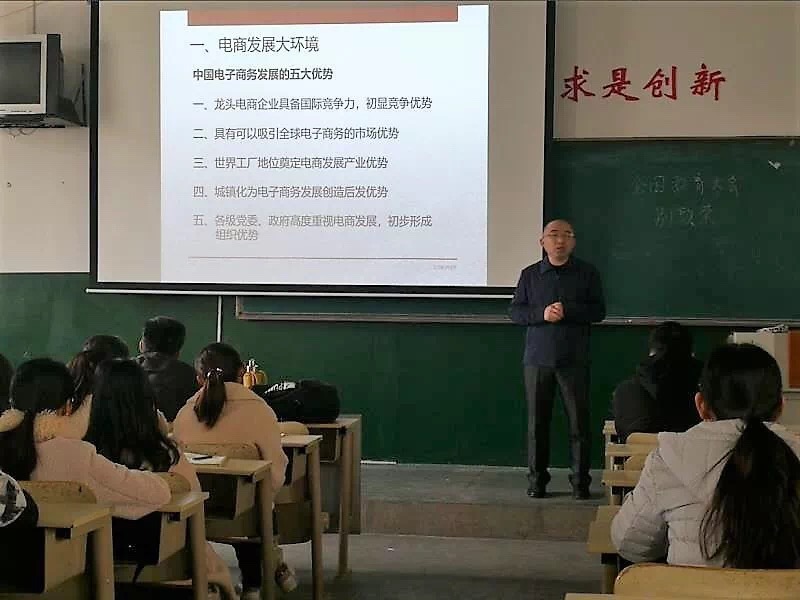 马会杰等人首先围绕当前跨境电商同学们关心的问题召开了座谈会,2017级和2018级跨境电商专业全体同学参加。同学们踊跃发言,就学习状况、行业前景和未来实习就业想法进行了交流。之后,马会杰主任以《跨境电商发展趋势和模式全解析》为题,介绍了当下电商发展大环境、跨境电商生态链及贸易发展的背景,对未来的电商的发展前景进行了展望。最后,同学们纷纷表示这次对接战略、提升绩效的活动十分有意义,开阔了眼界、了解了前景、学习的动力更强了。