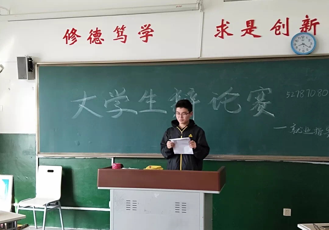 为了锻炼和加强大学生的思维逻辑和应变能力,3月16日上午,由伟德国际victor1946团委主办、学生会就业指导部承办的大学生辩论赛初赛于7号教学楼110教室举办。学生会副主席杨长琨、书记助理于娟、就业指导部部长柳文慧、新媒体部部长褚恩宏、女工部部长娄新杨、劳卫部副部长王美夫担任本次辩论赛的评委。
