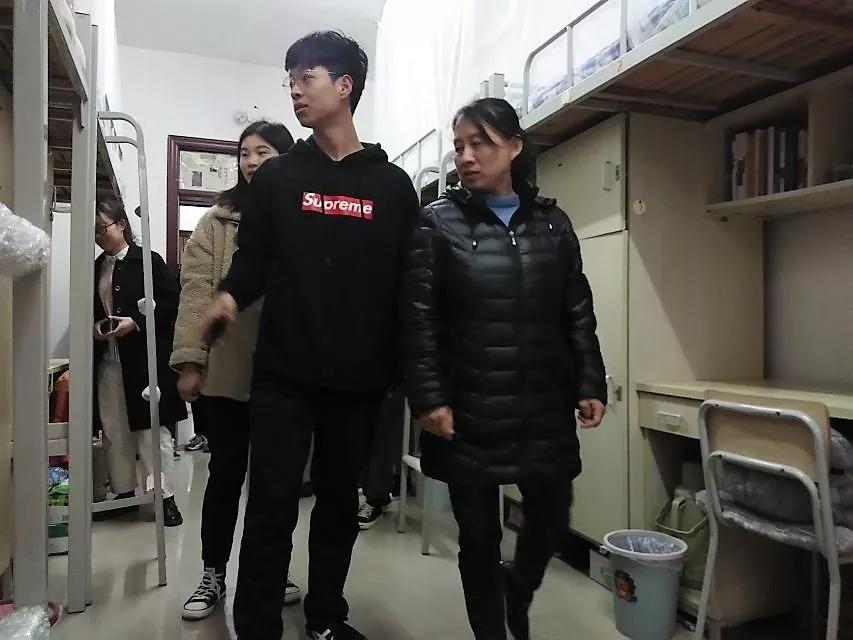 我院辅导员王丽芹,学生会副主席蔡棕明,权益生活部副部长孙丹丹、贾慧,2018级各班生活委员以及各班代表对五院学生宿舍进行参观学习。活动开始,各院代表在综合教学楼前的广场集合,共同安排各个小组负责的检查区域。随后各个检查小组对学生宿舍卫生情况进行检查。在此过程中,王丽芹与检查小组成员进行交流,询问各个学院的宿舍检查标准,分析不同学院宿舍的优缺点并对优秀宿舍进行拍照学习。其中,王丽芹重点参观学习了计算机学院的宿舍,充分肯定了他们对书柜、行李等物品的摆放方法。她说:“我院学生在内务整理方面还有待改进,应积极吸取别的学院在宿舍整理方面的优点,加强自身。”