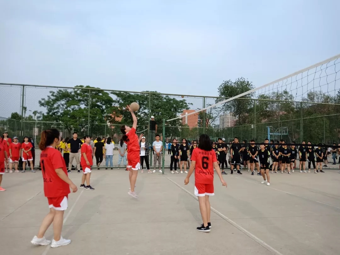 本次比赛由我院对阵商学院。 比赛开始,我方获得发球权,杜馨丽一个漂亮的发球赢得首分,大大鼓舞了我方士气。双方队员都全神贯注、不放过任何一分,几轮进攻结束,双方比分势均力敌。比赛进入到白热化阶段,孙航航一个漂亮的扣杀球打乱对方站位,拿下一分。李鑫颖和范萌调整站位、紧密配合、交替进攻与防守。最终,我院以绝对优势赢得了第一局的比赛。短暂休息后,双方互换场地。第二局一开始,对方发起猛烈进攻。面对对方的强烈攻势,我方沉着应对、默契配合。韩文丽高发吊球,孙航航抓住机会场外救球、多次扣杀,为我方拉平比分。但面对对方的猛烈进攻,我方成员体力不济,商学院小比分拿下第二局。在随后进行的第三局比赛过程中,双方比分交替上升,十分焦灼,最终由于我院运动员们体力不支,以两分之差惜败于商学院。
