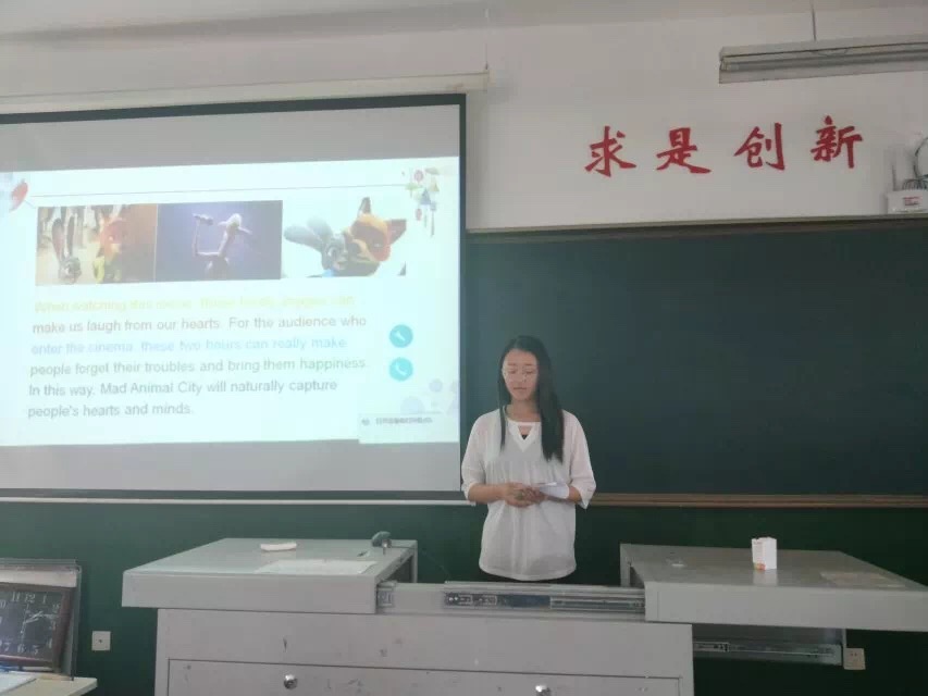 比赛开始前,杨洁炜首先向观众及选手介绍了本次活动的评委以及比赛规则,本次比赛分为选手展示及评委点评两个环节。来自商务英语本科班的殷艺萌作为第一位上场选手,向大家介绍了电影《机械公敌》。其将分享内容与ppt相结合,运用眼神交流和肢体语言与观众进行互动引起评委的一致好评。2018级公费师范班苗凤舞为观众带来《穿普拉达的女王》ppt分享,她对此电影进行深刻剖析,将女主角心理上的成长路线娓娓道来,其流利的口语赢、自信的表现赢得观众热烈的掌声。商务英语本科班的杨倩文为大家介绍动画电影《疯狂动物城》,为大家带来了精彩而又生动的PPT演示。其将自己的分享与六一儿童节的时间背景相契合,引起观众共鸣,获得评委的认可。比赛的进行到最后,评委就选手的英文发音、ppt排版设计、现场发挥等方面进行点评。由杨洁炜宣布最终结果,一等奖:2018级跨境电商班苏文卓;二等奖:商务英语本科班张秀华、英语教育一班吴艺萌;三等奖:杨倩文、英语教育二班李元杏、公费师范班苗凤舞。