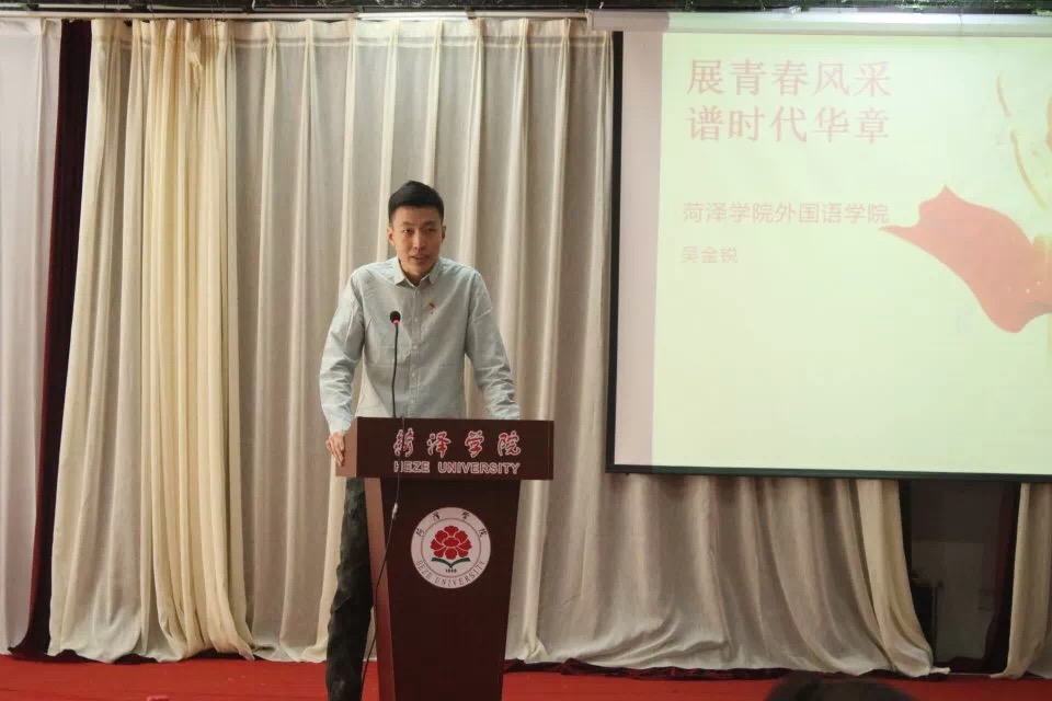 本次优秀毕业生党员事迹报告会共16个学院的优秀毕业生党员代表发表演讲。在主持人宣布演讲开始后,各学院优秀毕业生党员代表依次上台演讲。2015级英语专业吴金锐代表我院优秀毕业生党员发表演讲。在演讲中,吴金锐首先对自己大学四年生活做了简单概括,并与听众分享作为优秀党员毕业生的心得体会。他提到:“正是可爱的同学、和蔼的老师、多彩的校园帮助我逐步成长为党组织一员,让我对生活对学习充满信心,充满能量。”紧接着,吴金锐从三年学生干部的历练经历说明了能力越大,责任越大道理。在面对荆棘与坎坷的道路时,迎难而上才不会辜负老师与学生的信任。同时,吴金锐表示在大学生活中为自己的院系有所贡献是一种荣耀,是自己加入中国共产党动机。最后,吴金锐引用习近平总书记的一句话‘’现在,青春是用来奋斗的;将来,青春是用来回忆的。”勉励在场每一位学生为自己青春梦想奋斗。本次报告会圆满结束。