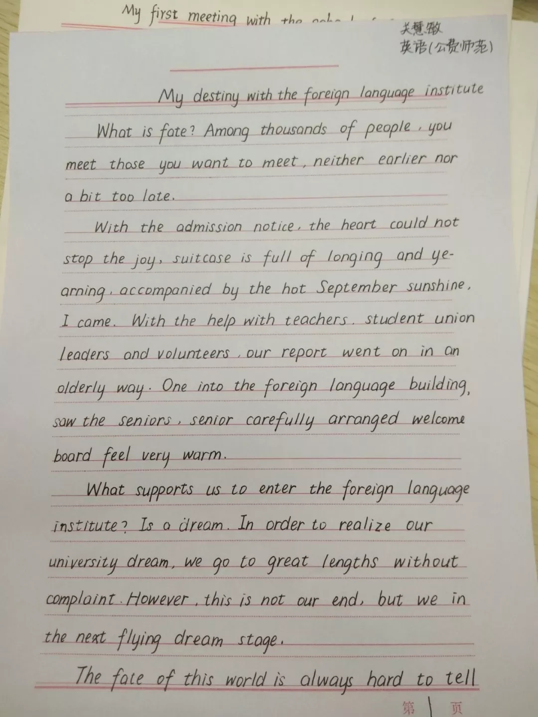 评选开始前,参赛者将作品交给征文大赛负责人。评委首先从书法的整体效果、字体美感、征文内容等方面对上交作品进行筛选。随后评委们根据上述标准挑选出部分优秀作品,并将其进行仔细比对。在最后评选环节中,2019级英语师范朱曦露因字迹工整、内容丰富受到评委的一致好评。最终评选结果为:一等奖朱曦露;二等奖:2019级公费师范关慧敏、商务英语二班吴霞;三等奖:2019级公费师范鲁志宇、商务英语二班闫金金、商务英语二班马雅茹;优秀奖:2019级商务英语二班金源、公费师范李润宇、英教一班邵柳倩。