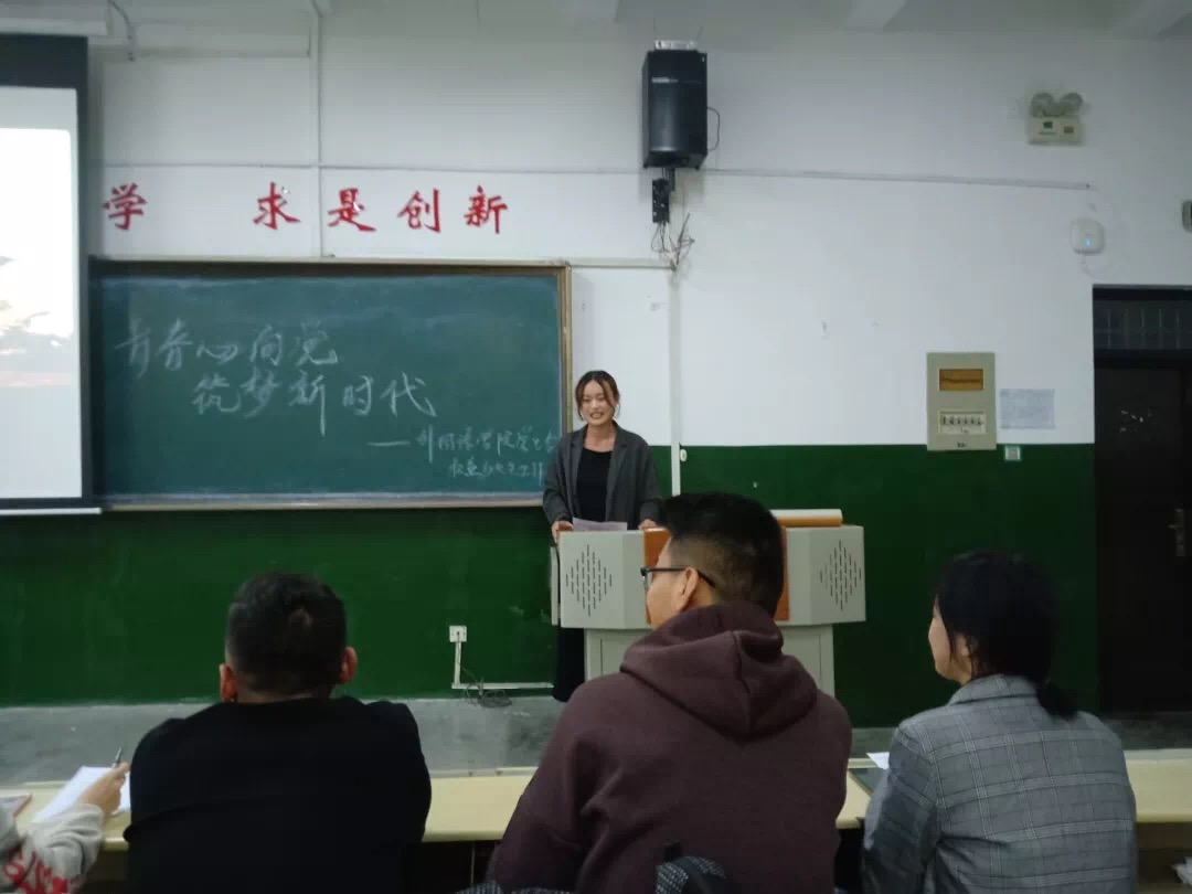 活动开始,2019级商务英语二班的吴霞首先向大家介绍本次比赛的规则和流程。来自2019级英语教育一班的理金旭作为第一位选手上场,他以优秀的口语表达能力、生动的演讲赢得在场观众的掌声。紧接着,来自英语教育一班的韩冰以《坚定跟党走,奋进新时代》为主题,用洪亮的嗓音、简洁的语言表达出对党的赞美。随后,2019级英语教育二班的邱玥采用幻灯片与演讲相结合的方式进行演讲。其高昂的声音,自信的表现得到评委和观众的一致好评。评委秉持公平公正的原则对每位选手进行打分和点评,指出选手的不足之处。最后,2018级商务英语班党文含荣获一等奖;理金旭、2019级商务英语一班孙梦婷荣获二等奖;邮轮一班宋馨、赵雨璇、邱月荣获三等奖。公费师范班田艳满、孙菁菁获得优秀奖。