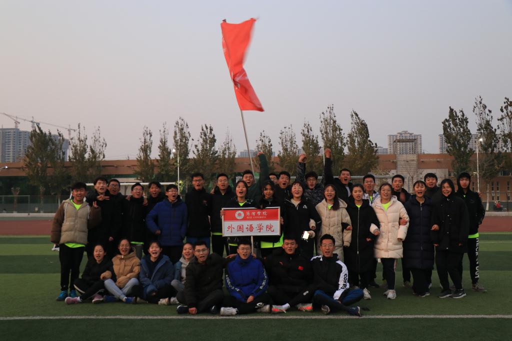 本次越野赛以田径场东直道、健身路、诚信路、陶然路至广场西环路为总路线,运动员按顺序依次进行接力比赛。下午一点半队员于田径场集合完毕进行赛前准备。随着裁判一声令下,比赛正式开始。我院参赛选手丁宁作为第一棒率先出发、保留体力,为后面的赛程奠定良好基础。我院运动员们在寒风中坚定向前、精神饱满、情绪高昂。刘禧凤作为女生组最后一棒奋力赶超一个个学院,最后尽管体力消耗过大,但在现场观众的鼓励呐喊声中,仍凭借其坚定的意志递出最后一棒。料峭的寒风阻挡不了运动员们奔跑的激情和热情,他们不言放弃、坚持到底的精神形成了一道亮丽的风景线。随后,吴海祥作为男生组第一棒上场,赛前的训练在此刻发挥出极大的作用,他沉着冷静的奔赴赛场、冲向前方。比赛过程中,我院运动员们配合默契,接棒人在接力点处随时做好起跑准备。与此同时,现场观众为运动员们呐喊助威,一句“外院,加油!”更是为运动员增添了动力。刘绪东作为我院最后一棒选手,在最后的冲刺阶段凭借其永不言弃、拼搏到底的精神,以最快的速度携最后一棒冲向终点。我院学生会成员及学生深受越野赛队员的鼓舞,举起我院院旗跟随刘绪东冲向终点。在比赛过程中,我院选手体现出来的坚强意志和永不放弃的精神深深打动在场观众。