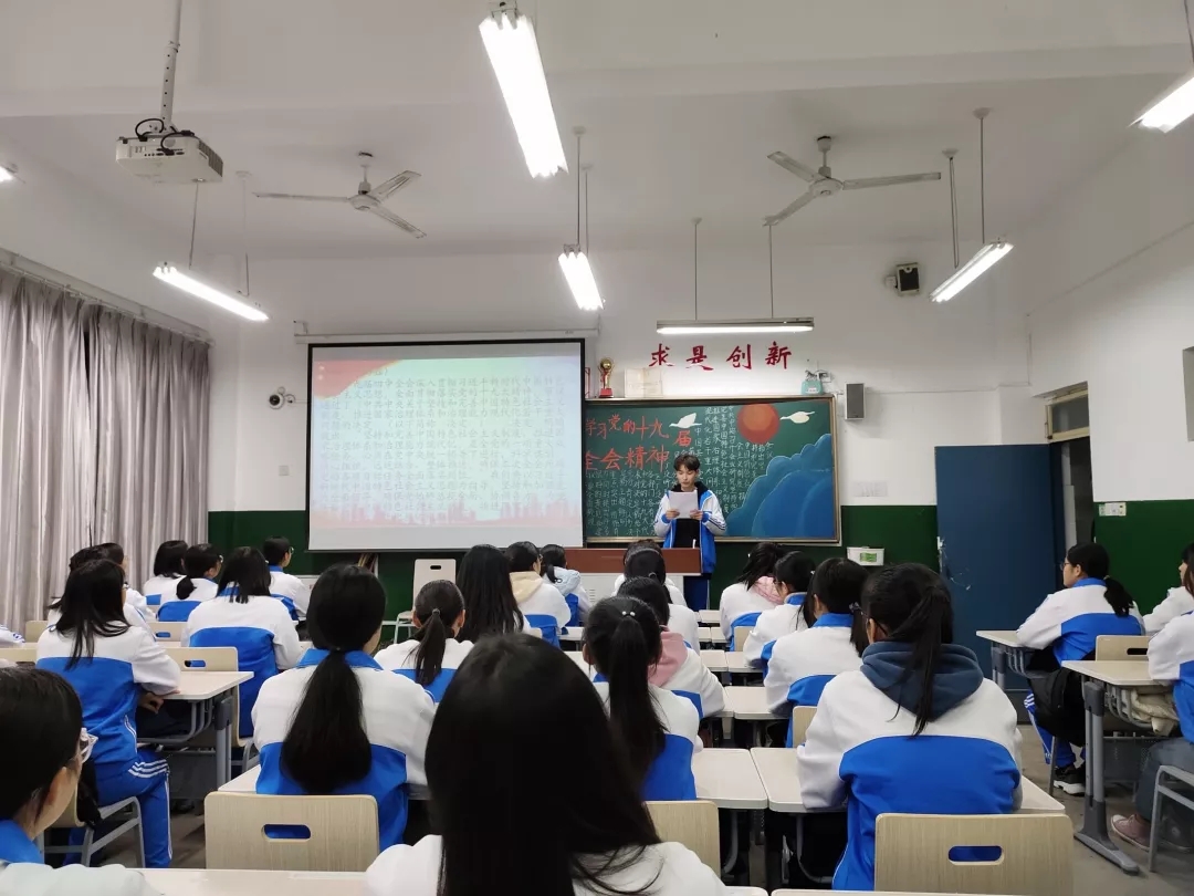 本次论坛以幻灯片放映为主,黑板报展示为辅。论坛伊始,由各班主持人带领本班学生进行庄严宣誓,铿锵有力的誓词声展现了学生们积极向上的精神风貌。宣誓结束后,各班主持人首先带领学生们学习了党的初心和使命。并围绕“深入贯彻落实党的十九届四中全会”这一主题强调了开展主题教育的重要性。随后,各班主持人进行了中文与英文演讲,结合具体案例让大家深刻了解到当今国内外形势的变化,以及中国当今所处的国际环境。各小组成员根据演讲内容进行了讨论。最后,各班主持人就中共中央坚持和完善社会主义制度的具体措施进行提问。学生们积极回答,提出自己的见解及建议。