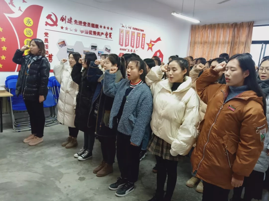 12月26日下午,伟德国际victor1946组织全体预备党员分子在7号教学楼五楼党员活动室进行入党宣誓仪式。我院学生党支部书记张丽竞,组织委员王丽芹、宣传委员曹展展,辅导员陈蕾到场指导。全体在校预备党员参与本次活动。