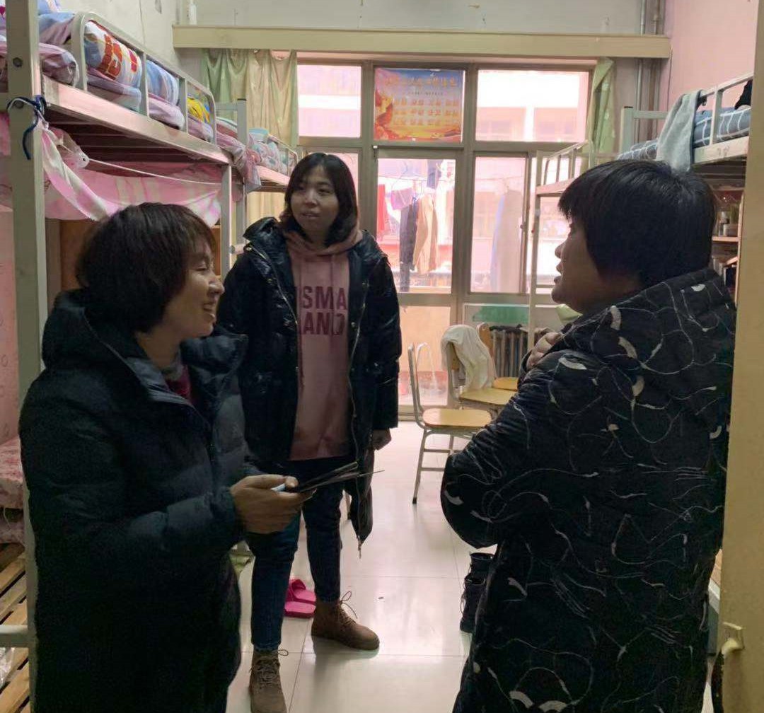 此次检查分为两个小组,分别对不同的教室和宿舍进行走访,走访教室期间,学院老师帮助同学排好桌椅;走访宿舍期间,学院老师与同学们亲切交流,了解同学们寒假离校的安排,并对宿舍安全隐患问题进行排查,向同学们传达了学校关于安全离校的相关要求,告诫同学们自觉遵守学校规章制度,安全用电,严禁使用违禁物品。离开之前,老师们叮嘱大家在离校前要关闭电源,锁紧门窗,在回家途中注意人身和财物安全。