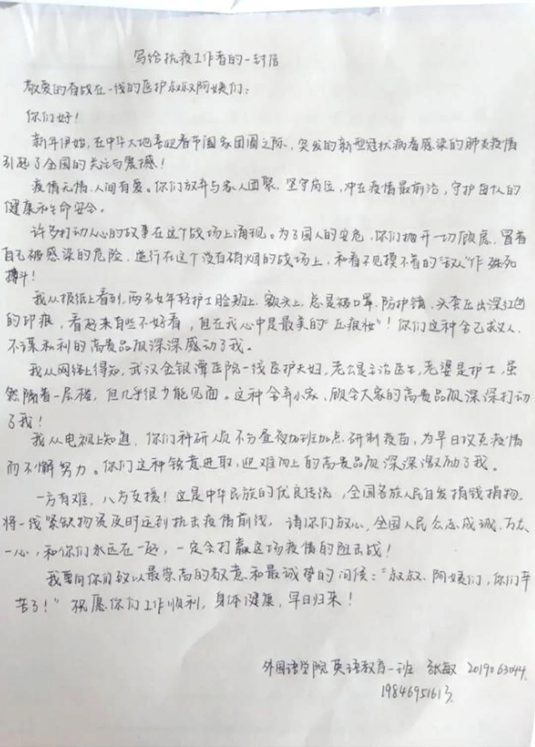 在本次活动中,共有60余名学生积极参加,参赛者如期上交作品。其中,高腾作品中一句“您们只是一位又一位的平凡人,但在生死关头,为了他人的生命,依然前行,背负起十四亿人的期盼”写出了疫情之下抗疫工作人员的责任与担当。另外,毛月红的作品以“感恩”二字为中心,向春节期间仍坚守奋战的无名英雄们致敬,并感谢他们为保护百姓安危所做的牺牲与奉献,赞扬了他们“舍小家为大家”的无私奉献精神,获得评委们一致好评。在评选环节中,评委们秉持着公平公正的原则,评选出参赛作品的获奖名单。最终,毛月红获得一等奖;高腾、张敏获得二等奖;张路瑶、赵蕾、王琼瑶获得三等奖。
