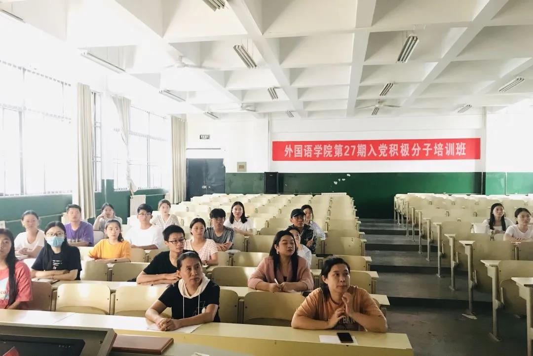 9月10日,伟德国际victor1946第二十七期入党积极分子培训开班仪式暨第一次培训课于7号教学楼202室举行。我院党委书记吴成显,党委副书记杨冬,学生党支部书记张丽竞,组织委员王丽芹,辅导员陈蕾、刘亭亭参加本次开班仪式。2017级、2018级、2019级共51名学生作为入党积极分子参加培训班。本次开班仪式由张丽竞主持,杨冬担任第一次培训课主讲人。