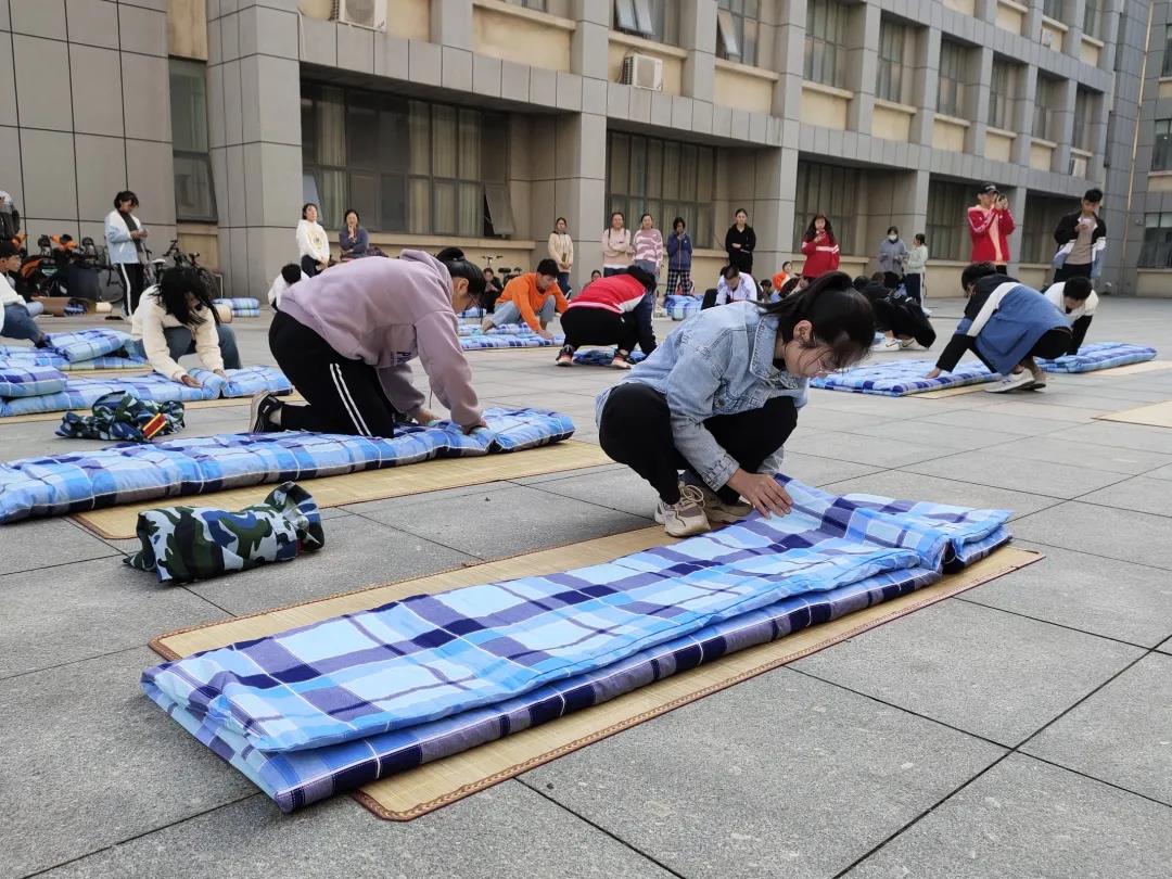 我院参赛选手满怀信心,以流畅的动作,娴熟的技巧,快速平铺折叠、压实、两手碾出棱角,力求叠出“豆腐块”军被。向大家展示了自己在军训期间的学习成果,彰显了我院学生良好的精神风貌。评委们从参赛选手的被子外观、表面平整度、整体美观性及是否有棱有角等方面对参赛选手进行综合打分,经过激烈角逐,我院3#231宿舍荣获团队三等奖;我院3#232宿舍张梦宇荣获个人三等奖。