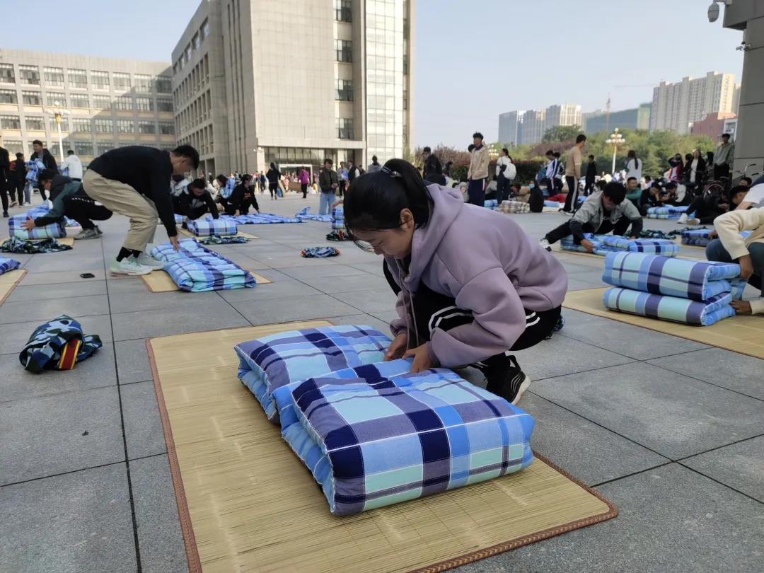 比赛伊始,由4名退伍学生带领着12名城市建设学院女生进行内务整理秀。随后,参赛学生将自带的被褥、凉席摆放到指定位置,裁判一声令下,比赛正式开始,各楼公寓管理员担任评委,四个赛区比赛同时展开,场面整齐壮观,有条不紊,评分严格按照公寓管理规定的标准执行。
