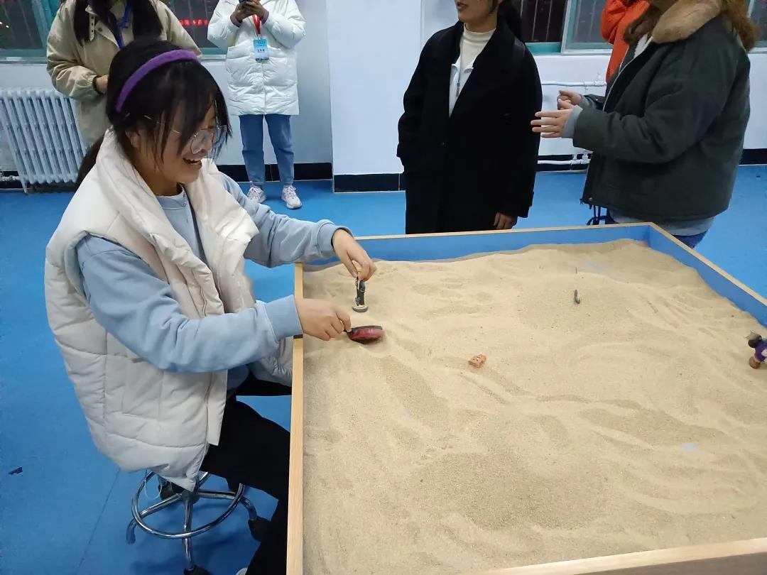 晚上七点,心理健康部负责人徐熙媛带领学生们依次参观了个体心理咨询室、行为观察室、音乐放松室、情绪宣泄室、心理沙盘室和团体活动室等。宣泄小人、沙盘、生物反馈仪、按摩椅等专业有趣的设备吸引了大家的注意力,徐熙媛为大家详细讲解了不同设备的不同用处,学生们在活动教室充分放松身心,与其他学生进行互动和游戏。随后,徐熙媛组织学生们观看心理教育相关电影,让学生更加深入的了解大学生心理健康问题。参观最后,徐熙媛详细介绍了心理健康教育中心的预约方式,以便于学生出现心理问题时及时获得帮助。