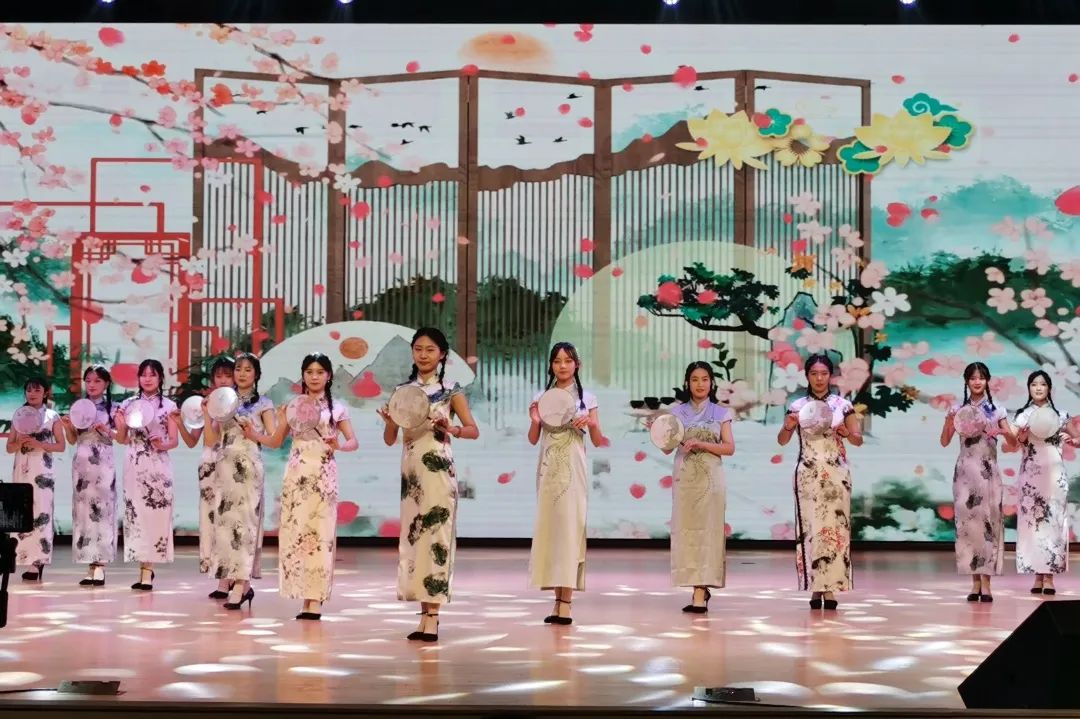 下午2点30分,比赛正式开始。我院旗袍队作为第十个院系代表队上场,表演曲目为《苏幕遮》。伴随着音乐的响起,我院旗袍队员们迈着优雅的步伐缓缓走上台。她们身着旗袍,时刻保持着典雅、高贵的韵致,坐、立、行、走中规中矩,不似张扬。举手投足间,流露出端庄与雅致,一颦一笑间,都展现着当代女大学生的宁静与优雅之美,分外吸引观众的目光,赢得在场评委和观众热烈的掌声。评委们分别从行姿、舞台形象、才艺展示、节奏、着装五个方面进行综合评定。最终,我院以9.49分的成绩列第六名,荣获三等奖。