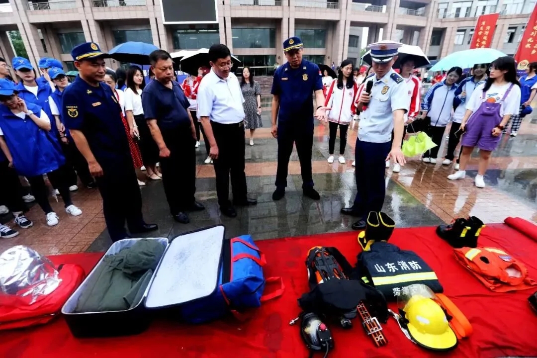 首先,张奎杰代表市消防救援支队向关心、支持消防工作和消防公益事业的院校师生、志愿者们表示感谢,并现场号召广大师生积极参与消防志愿服务活动,为创造良好的消防安全环境、建设平安菏泽作出贡献。仪式上,与会领导为消防志愿者服务队授旗,青年志愿者代表宣读志愿倡议书,倡议大家从自身做起,践行“奉献、友爱、互助、进步”志愿服务精神。随后,现场160名志愿者进行集体宣誓。仪式最后,衣玉琛进行总结讲话,希望全体消防志愿服务队队员充分发挥大学生的特长优势,广泛开展消防知识宣传、整改火灾隐患、消防安全救助等工作,为建设和谐优良的消防安全环境贡献一份力量。仪式结束后,志愿者们在指战员的带领下,对消防车辆器材装备进行现场参观学习。