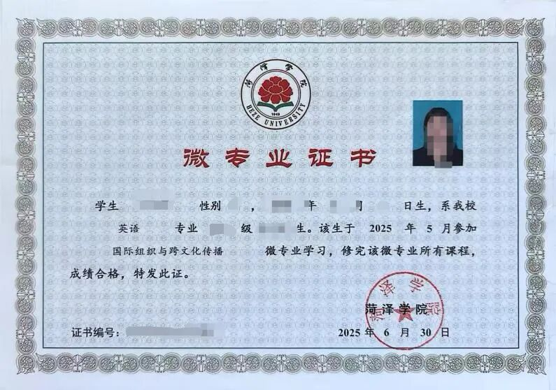 学生完成本微专业全部课程学习并通过考核,达到15学分要求后,由伟德victor1946颁发“国际组织与跨文化传播”微专业证书,证书信息纳入学校学籍管理系统,学信网可查询,作为学生跨领域就业、升学的重要能力证明。