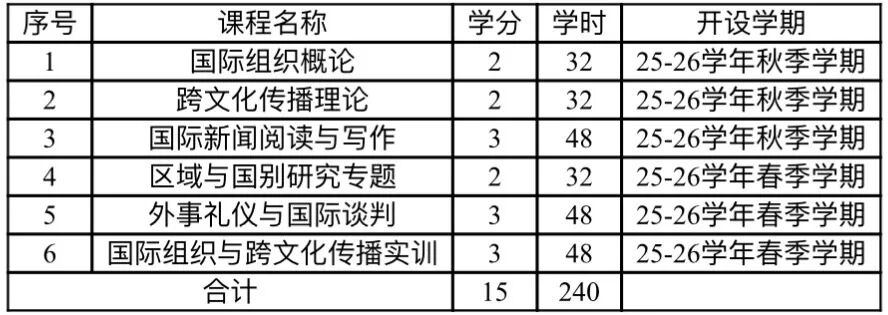 本专业为教育部“双千计划”首批入库备案微专业,以国际组织运作逻辑与跨文化传播规律为核心,整合语言学、政治学、传播学和管理学等多学科知识,依托“校-校-政-企”协同育人机制,构建“理论筑基—技能强化—实战应用”培养链条。本专业联合人文与新闻传播学院共建跨学科课程资源,邀请国际组织官员和国际电台资深主持人担任实践导师,通过破解传统人才培养中“外语与国际规则脱节”“理论与跨文化实践分离”的痛点,精准对接国际合作深化、企业国际化拓展、文化交流互鉴等社会需求,为学生搭建通往国际组织、跨国企业、外事机构的职业发展桥梁。