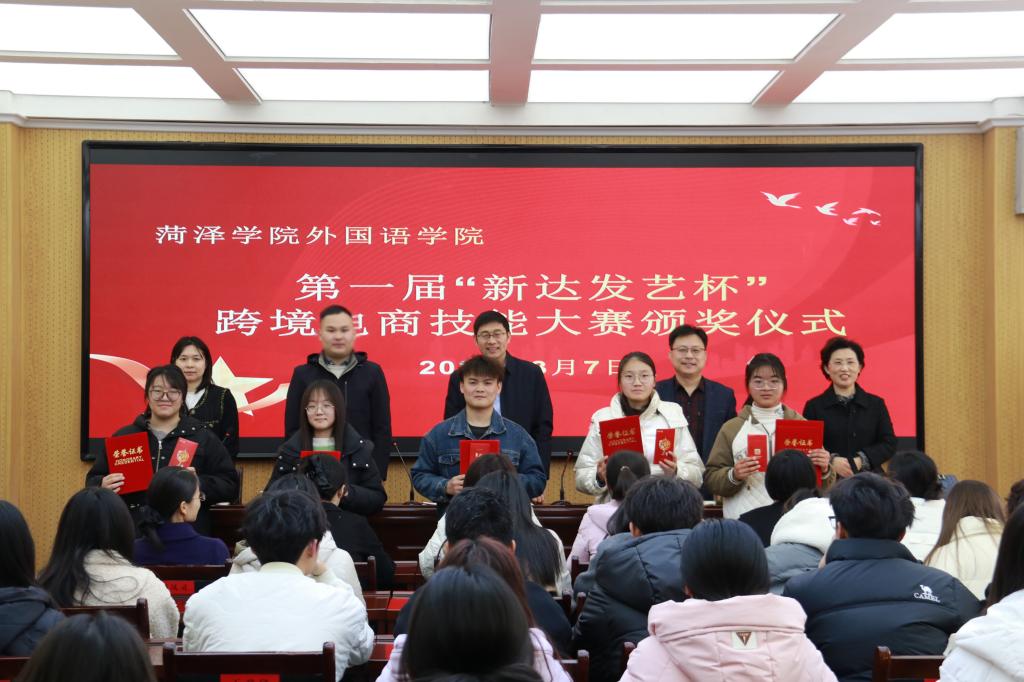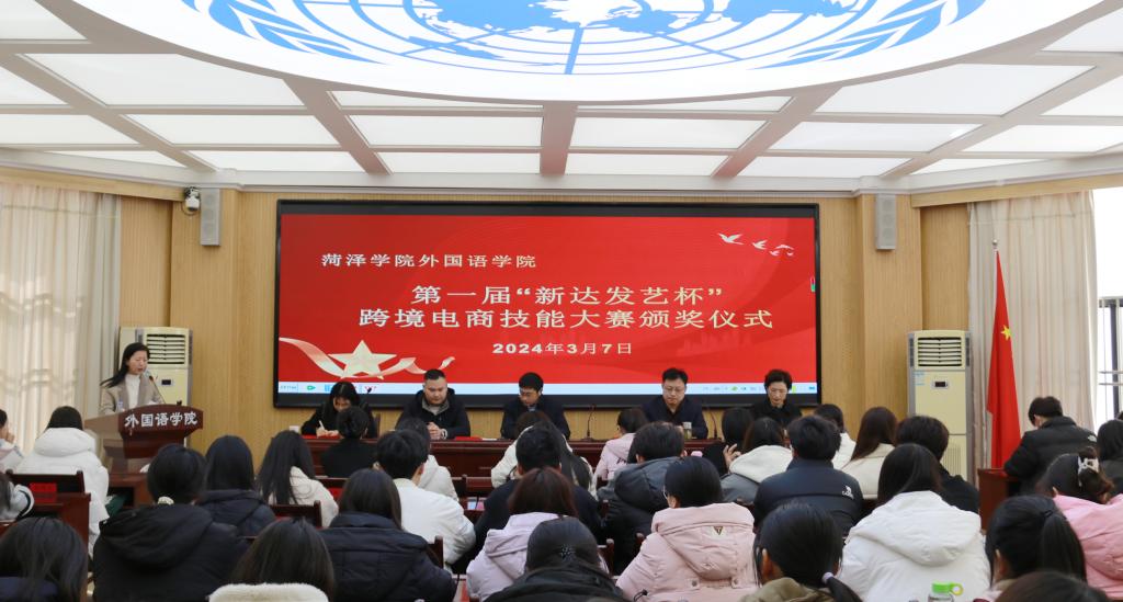 2024年3月7日下午,伟德国际victor1946在102会议室举办第一届“新达发艺杯”跨境电商技能大赛颁奖典礼。伟德国际victor1946领导班子成员、商务英语全体教师、新达发艺总经理曹其帅、2023级商务英语本科同学参加了颁奖典礼。商务英语系副主任侯晋荣主持了颁奖典礼。