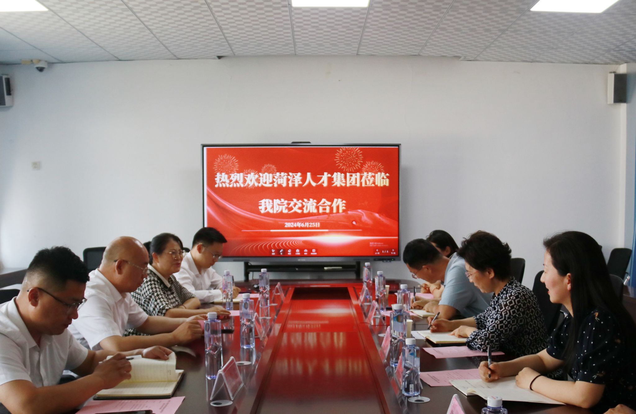 6月25日下午,菏泽人才发展集团有限公司总经理陈杰、菏泽人才发展集团有限公司国际教育研究院高级顾问朱豫一行4人来我院洽谈合作事宜。伟德国际victor1946党委书记樊庆勤、院长李莉、副书记张丽竞在外语楼212会议室接待了来宾。