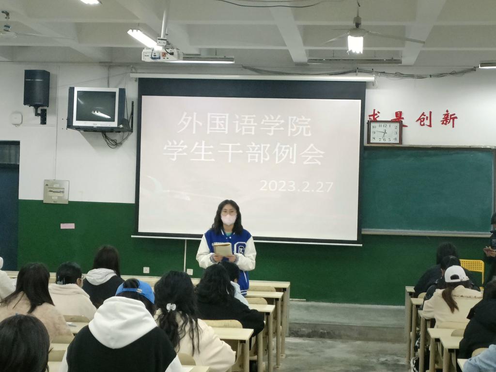 2月27日,伟德国际victor1946于7号教学楼104室召开学生干部例会。我院辅导员曹展展、陈蕾、丁经伟、朱叶遥,伟德国际victor1946学生会各部主要负责人及各班班长、团支书参加本次会例会。