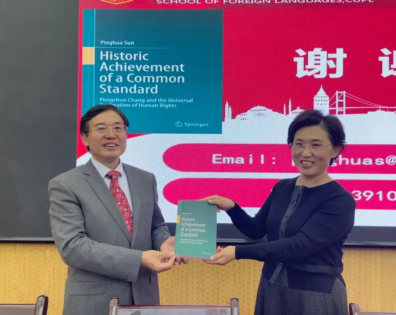 孙平华教授的讲座题目为“中华学术外译项目申报与研究”。孙教授结合自己的成功经验,解读了中华学术外译项目申报、立项、鉴定、成果出版、结项等流程,并就选题、申报书撰写等方面做了重点分析。孙教授强调,中华学术外译项目代表中国学术水准,体现中华文化精髓,应积极参与中华学术外译项目申报,将中国学术精品并入国外主流发行渠道,增强中国学术国际影响力和国际话语权。最后,孙教授还向我院捐赠一本个人专著。