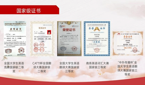 我一直坚信,学习是学生的第一要务。自进入大学以来,我勤奋钻研科学文化知识,被多次评为优秀学生,获得老师和同学们的一致认可。我连续三年保持本专业综合成绩第一,荣获山东省政府奖学金。同时,我积极参加英语类国家级比赛,获得全国大学生英语竞赛国家级二等奖、CATTI杯全国翻译大赛国家级二等奖、全国大学生英语翻译大赛国家级三等奖、商务英语词汇大赛国家级三等奖、中外传播杯全国大学生英语翻译大赛国家级三等奖五项国家级证书,山东省英语翻译大赛省级二等奖、词达人杯词汇大赛省级三等奖两项省级证书,通过了国际人才考试、教资、专业四级等多项考试。这些比赛和考试让我一次次走出舒适区。没有一蹴而就的成功,我所有的成长都始于一次次积累。向成功学习,向失败学习,这是我给自己的激励。