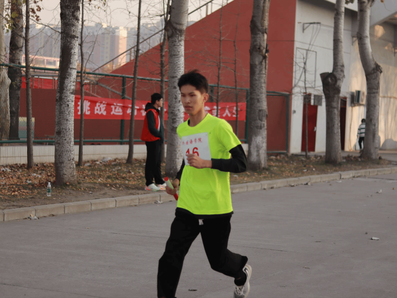下午两点,发令枪的脆响骤然撞开赛场的沉寂。我院选手即刻箭步冲出,步伐坚定稳健、步步铿锵,每一次蹬地都凝聚着向前的力量,在赛道上划出连贯而执着的轨迹。