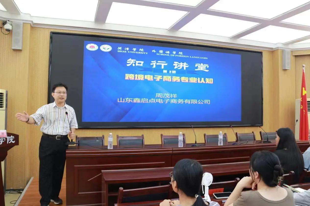 9月5日,为了加强2023级商务英语专业学生对跨境电商的认知,伟德国际victor1946特邀请山东鑫启点电子商务公司周茂祥总经理做了两场关于跨境电子商务知识的讲座。伟德国际victor1946院长孙洪波院长、商务英语教研室主任郝利军及2023级全体新生参加。