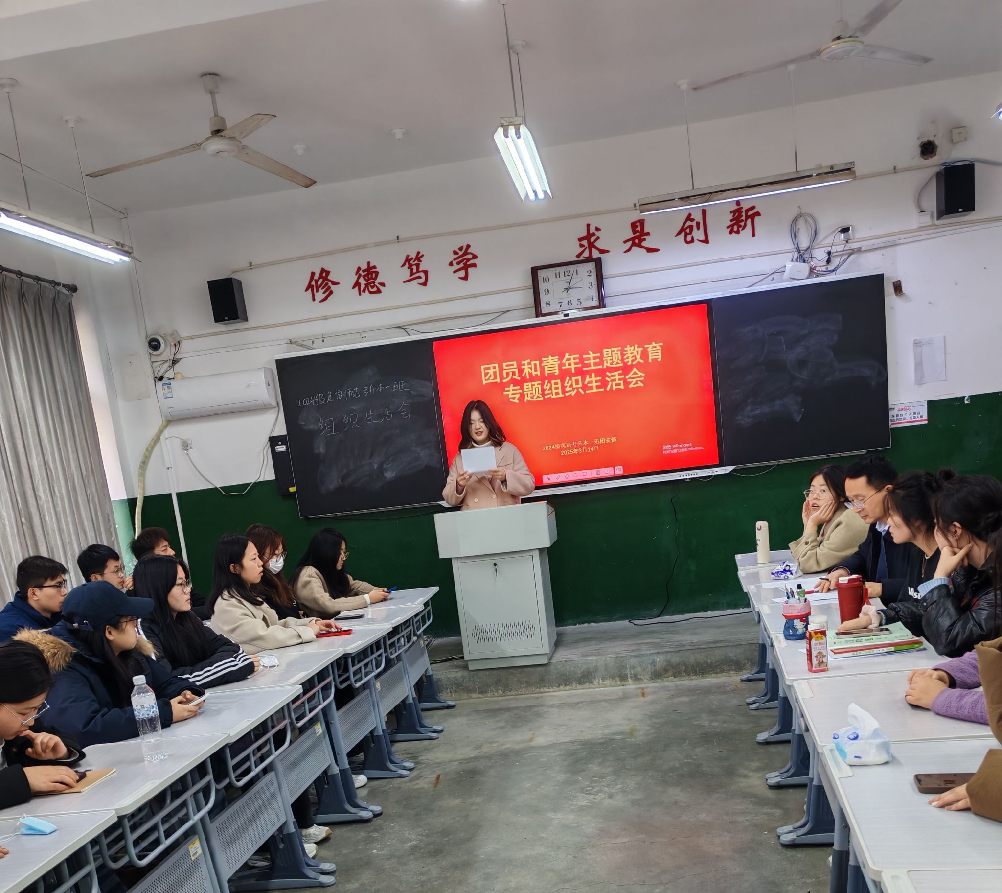 民主评议环节,团员们秉持客观公正原则,采取个人自评与团员互评相结合的方式,对每位团员进行综合评价。各班班主任深入班级参加会议,为本次会议进行点评。