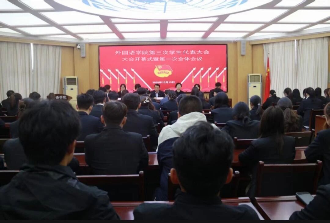 10月13日下午,伟德国际victor1946第三次学生代表大会隆重召开。伟德国际victor1946党委书记樊庆勤,党委副书记、院长李莉,共青团伟德victor1946委员会副书记孙亚梅,伟德国际victor1946党委副书记张丽竞,党委委员、副院长刘静,全体辅导员老师、各兄弟学院学生会主席团特邀嘉宾及外国语学生代表共100余人参加会议。会议由团委副书记丁经伟主持。