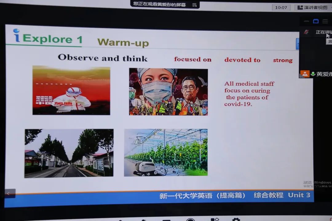 47日下午三点半,伟德国际victor1946全体教职员工在副院长李莉的主持下开展了线上教学观摩活动。伟德国际victor1946院长孙洪波、副书记刘艳丽及全体教师听取了黄永华老师的大学英语课程和苏翠英老师的英语专业课程。