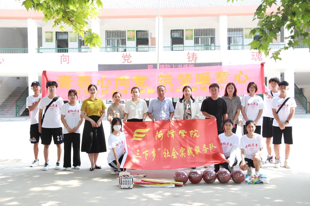 为响应大学生志愿者暑期“三下乡”社会实践活动的号召,6月22日,伟德国际victor1946“青春心向党,筑梦暖童心”暑期社会实践服务队在菏泽市鄄城县引马镇申河口完小学进行“三下乡”社会实践活动。伟德国际victor1946党委副书记刘艳丽,学工办(团委)主任(书记)张丽竞,辅导员曹展展、陈蕾、刘亭亭带领伟德国际victor194611名学生志愿者参加活动。