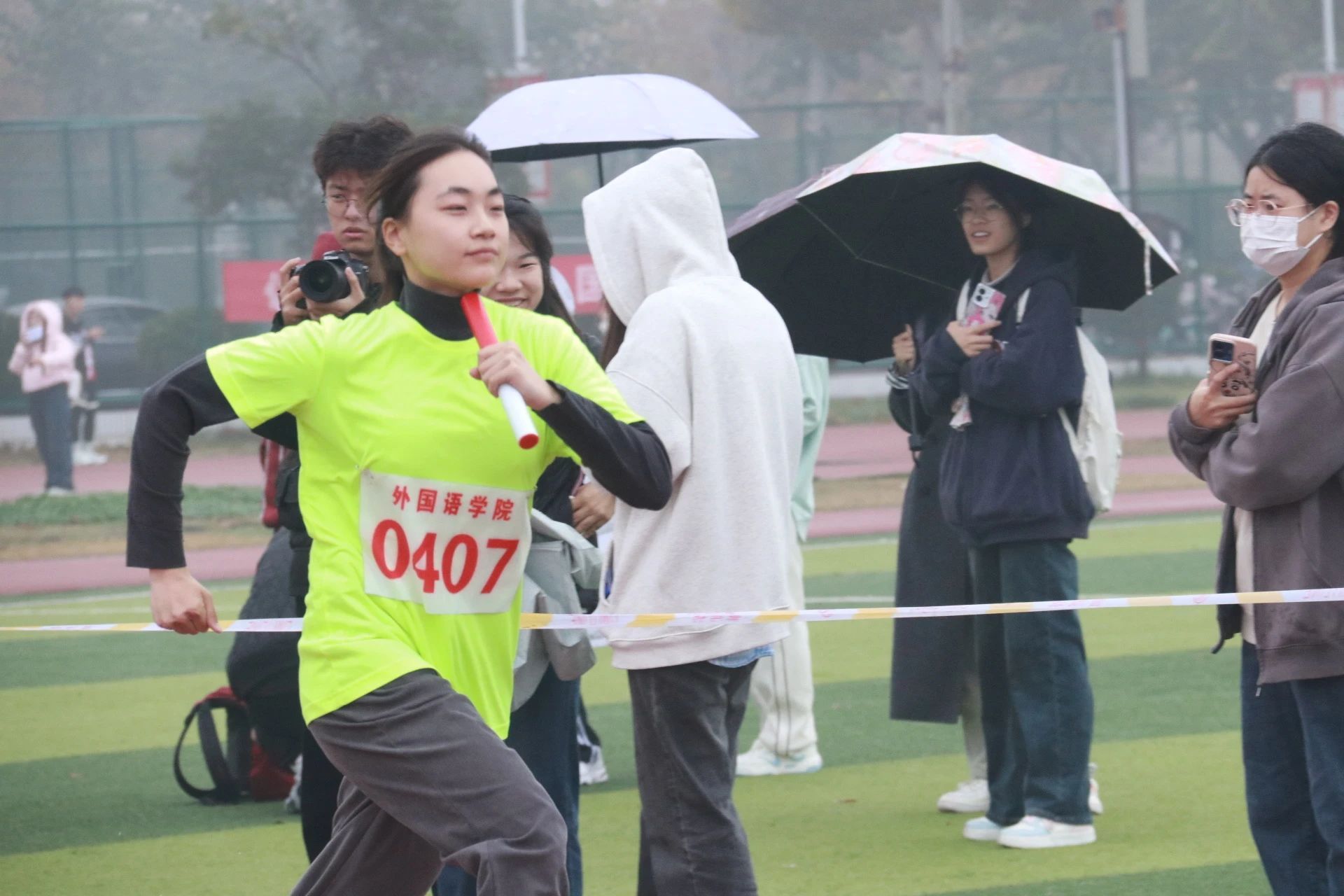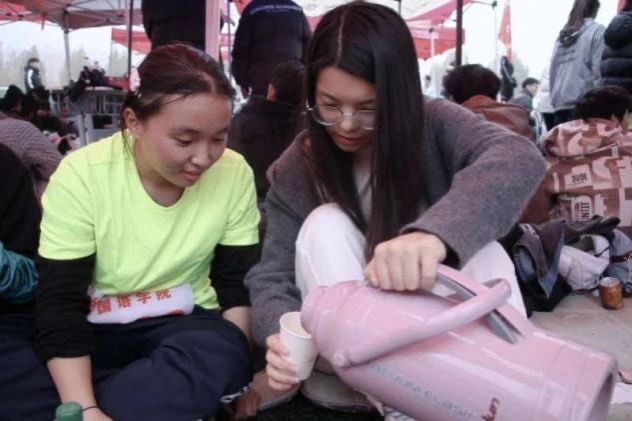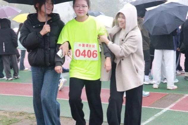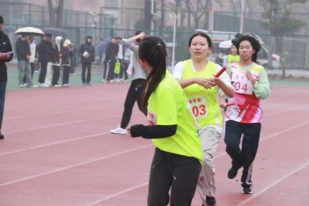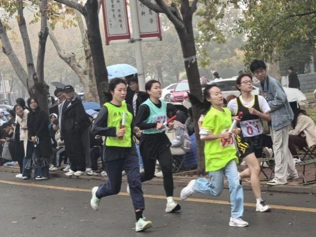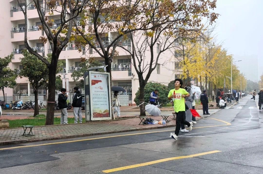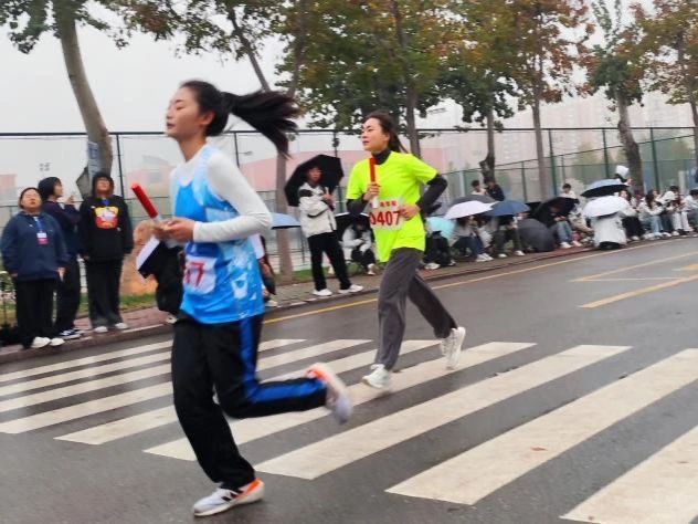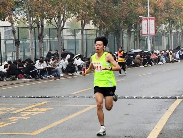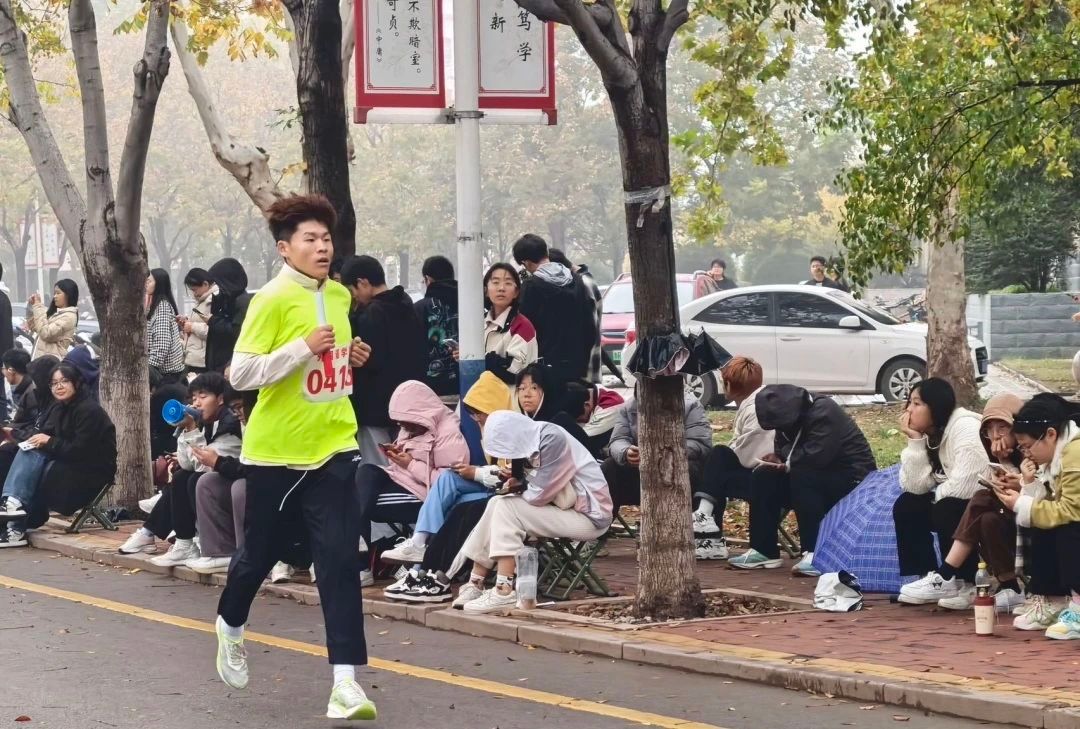 我院的学生为参赛选手加油打气,凛冽寒风挡不住大家的热情,运动员们迈着坚定步伐,挥洒青春激情。