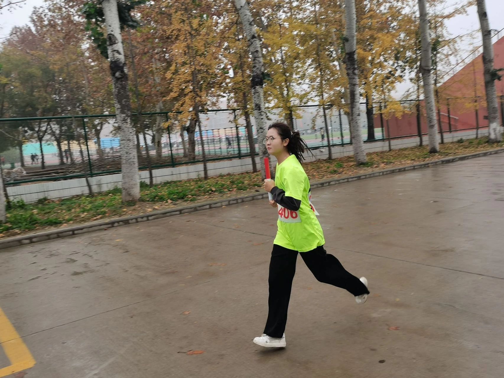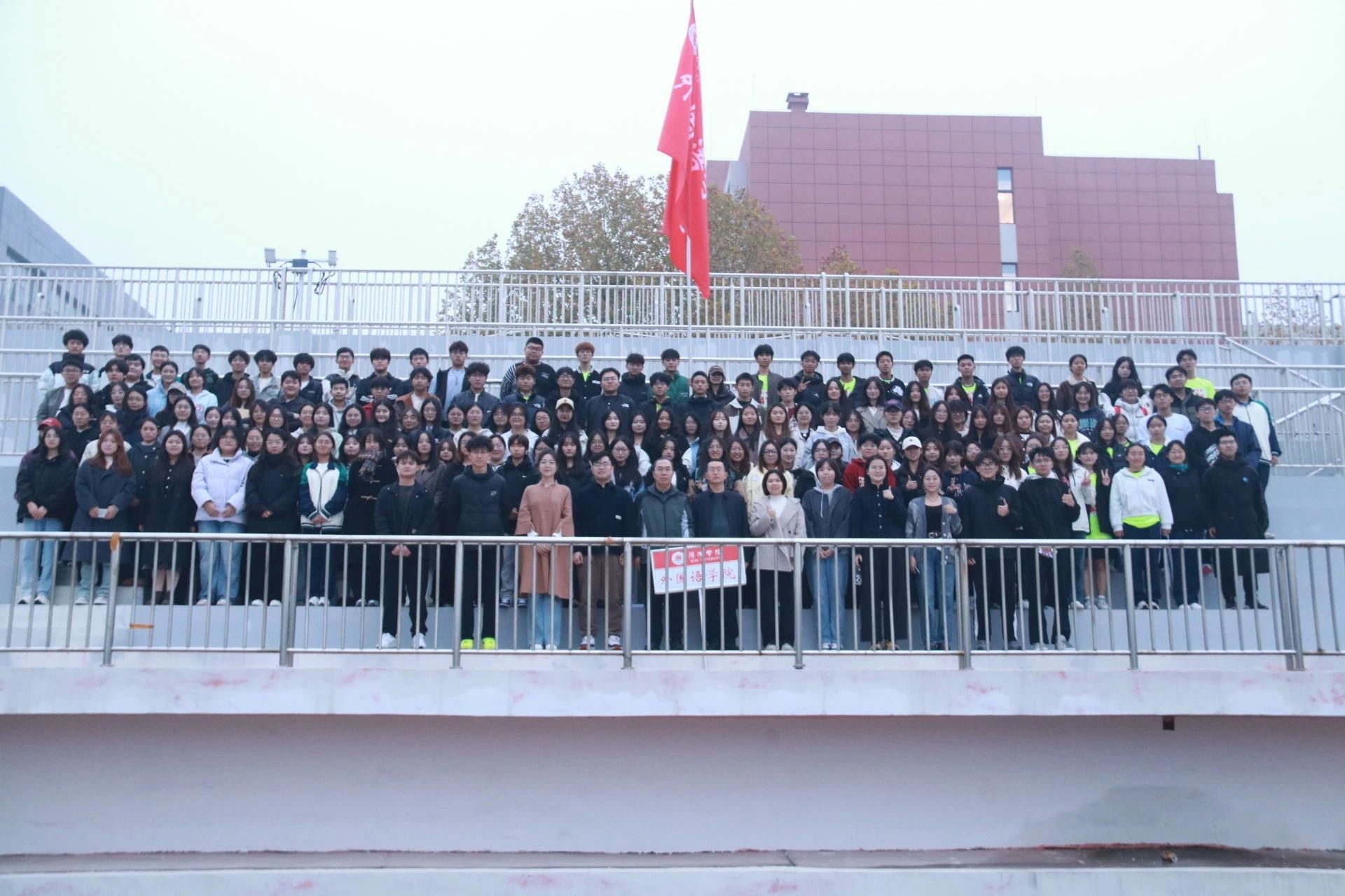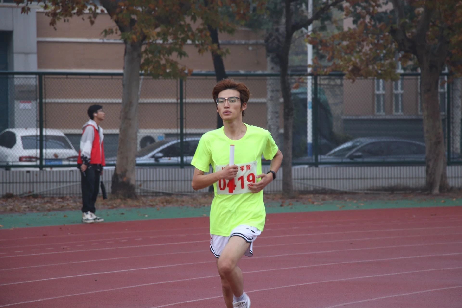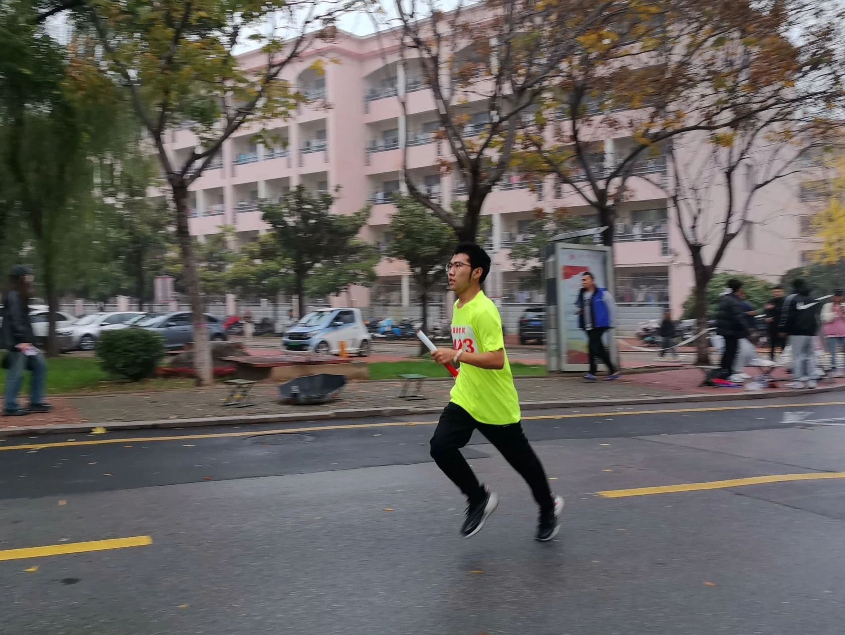 我院的学生为参赛选手加油打气,凛冽寒风挡不住大家的热情,运动员们迈着坚定步伐,挥洒青春激情。