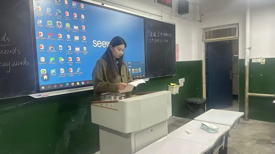 在比赛环节中,选手们各展风采,以英语演绎作品。或温婉舒缓,传递立冬的静谧之美;或激昂澎湃,诉说青春的炽热情怀。每一段朗诵都融入了独特的个人理解,让诗词好句的意境在语言的碰撞中流转,也让现场观众沉浸式感受 “诗词 + 外语” 的独特魅力。