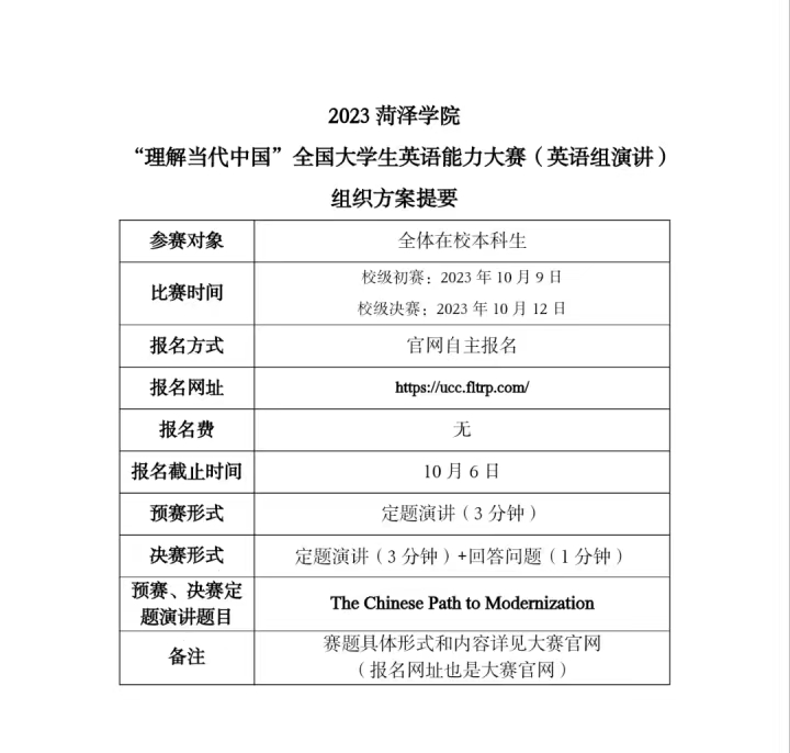 2023“理解当代中国”全国大学生英语能力大赛由北京外国语大学主办,外语教学与研究出版社承办。为响应大赛组委会要求,由伟德国际victor1946承办校级初赛。现将有关事项安排如下: