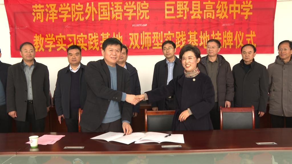 为推动校地战略合作走深、走实,会后尹晓允一行又赴巨野县彭泽中学、巨野县高级中学走访调研,先后受到校长国庆国、校长解建明的热情接待和欢迎。经友好协商,伟德国际victor1946与两所学校均达成进一步合作意向,并相继签约揭牌“伟德victor1946双师型教师培训基地”、“伟德victor1946教学实习基地”。