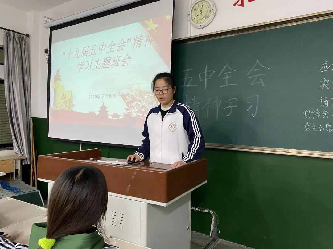 11月17日,伟德国际victor1946开展以“贯彻学习党的十九届五中全会精神”为主题的班会于7号教学楼各教室举行。我院2019级、2020级全体学生参加本次班会,各班团支书担任主持人。