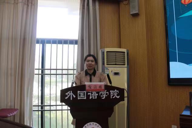 张丽竞以《以党的二十大精神为指引,让青春在担当责任中闪光》为题,从党的二十大精神、教育的美好未来、青年的使命担当等三个方面,对党的二十大精神的丰富内涵和核心要义进行详细阐释,并结合实例,分享张桂梅、黄文秀等优秀共产党员的先进事迹,鼓励学生向先进学习,努力成为信仰坚定、理想远大、脚踏实地、自信自立的新时代奋进青年,为中华民族伟大复兴中国梦的实现贡献自己的力量。同时,她指出,作为外语人应具有国际视野和文化视野,要用自身行为的示范性充分展现当代中国先进思想、文化等方面建设的精神内涵和时代价值,要以党的二十大精神为指引,以奋斗成就历史,以实干创造未来。