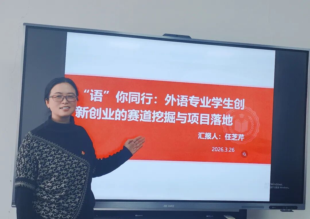 随后,英语系骨干教师任芝芹以《“语”你同行:外语专业学生创新创业的赛道挖掘与项目落地》为题,分享了大学生创新创业训练项目申报及国家级立项经验,为支部党员在教学科研与人才培养工作中提供务实参考,凝聚党建与业务“一融双高”的思想共识。