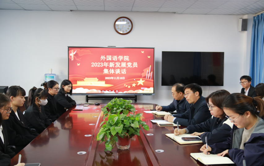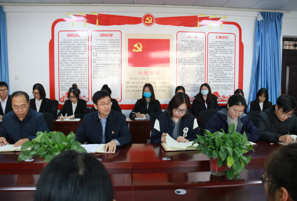 会议伊始,尹晓允对新发展党员表示祝贺。接着,尹书记从党员入党的认识想法、入党动机和今后努力方向和与会党员进行深入谈话。10名同学分别就对党的认识、入党动机和下一步学习、生活的计划进行了发言。2020级日语班朱欣雨表示加入中国共产党是自身的荣幸,将会牢记入党誓词,勤奋工作刻苦学习、处处以党员标准严格要求自己;2021级商务英语班李志梅表示今后要坚定理想信念,锤炼过硬本领,坚守时代使命,紧跟党的步伐,在学习和生活中锻炼自己的本领。
