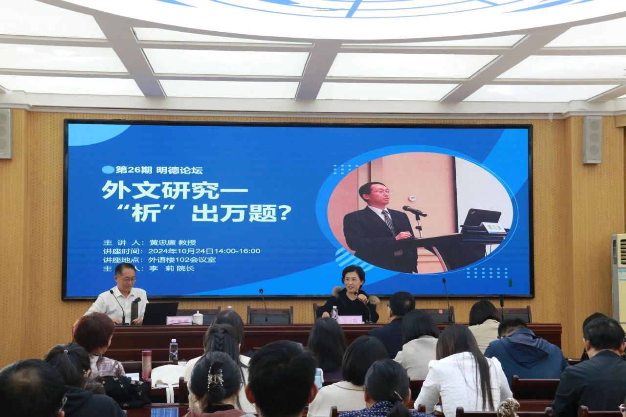 10月24日下午,伟德国际victor1946“明德论坛”系列讲座第二十六期在7号教学楼102举行,应邀参加本次讲座的嘉宾是广东外语外贸大学二级教授,博士生导师与博士后合作导师黄忠廉教授。讲座由伟德国际victor1946院长李莉主持,伟德国际victor1946领导班子和全体教职工参加。