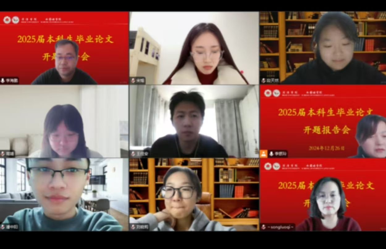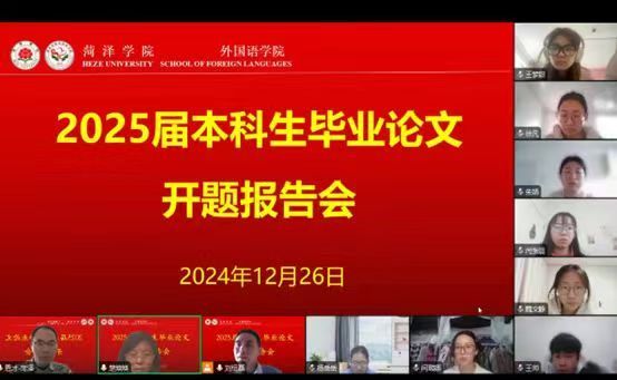 2024年12月26日下午,外国语日语专业2025届本科毕业论文开题报告会以线上方式分两组进行,日语系6位教师、2021级日语班全体同学参加了此次活动。