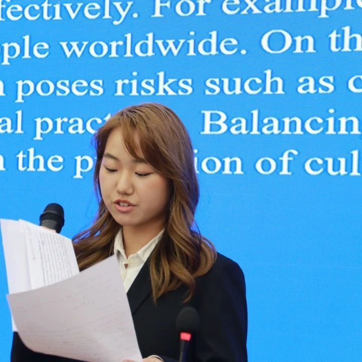 在比赛的第二个环节--即兴演讲中,10名选手分别围绕“Significance of Preserving the Cultural Heritage in the Digital Era”和“The Art of Telling Chinese Stories via Social Media”两个主题展开阐述。有的选手结合敦煌数字壁画、故宫AR展览等案例,深入剖析数字化如何突破时空限制,让文化遗产“活起来”;有的选手从李子柒短视频风靡海外和电影“哪吒”的国际影响说起,分享社交媒体怎样以生动叙事打破文化壁垒,让中国故事走向世界。选手们的演讲不仅展现了扎实的语言功底,更传递出对文化传承与传播的深刻思考,赢得现场观众阵阵热烈掌声,也将比赛氛围推向了新的高潮。