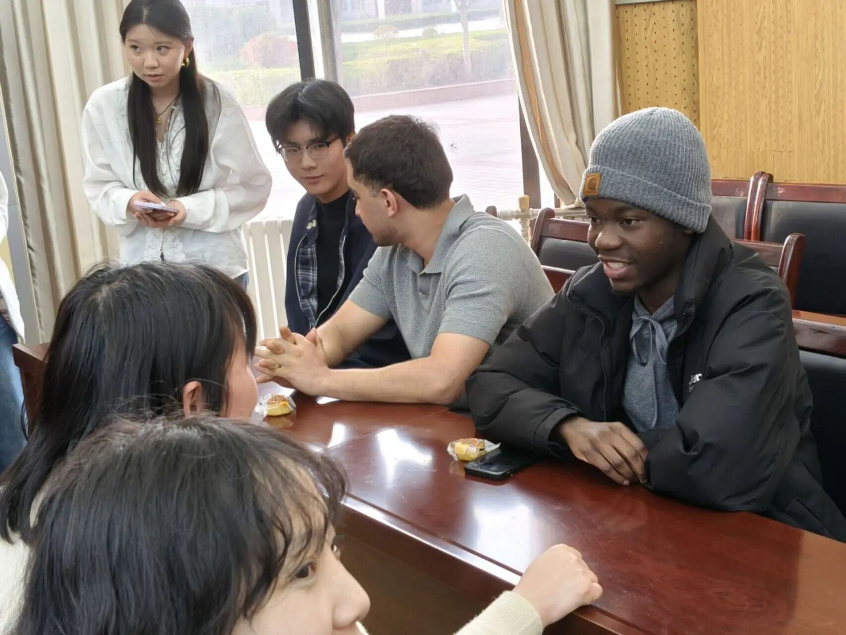 活动以“文化体验+场景化英语表达”为核心,采用阶梯式环节设计,让同学们在轻松氛围中实现从“敢说”到“会说”的稳步提升。在圆桌文化分享环节,分享者借助实物与文化信息卡,用英语讲解中西方季节文化内涵,并带动现场互动交流,共同搭建起“中西方季节文化+英文评价”展示墙。自由交流阶段,同学们从最初的拘谨逐渐变得从容自信,在轻松对话中锻炼表达、收获成长。