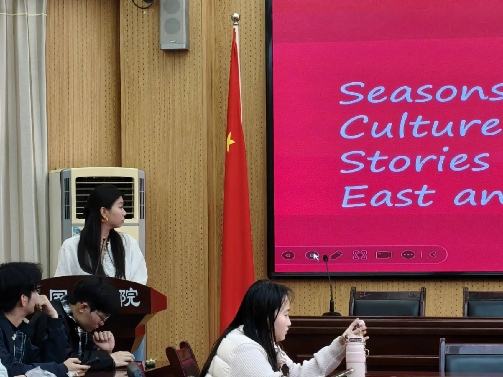 3月27日下午,由伟德国际victor1946主办、英语俱乐部承办的语界沙龙活动在7号教学楼102会议室顺利举行。本次活动以“中西方季节文化——用英语讲述我们的故事”为主题,着力破解英语口语学习中讲解枯燥、参与度不高的问题,切实提升学生英语应用能力与跨文化传播意识,吸引了众多同学积极参与。