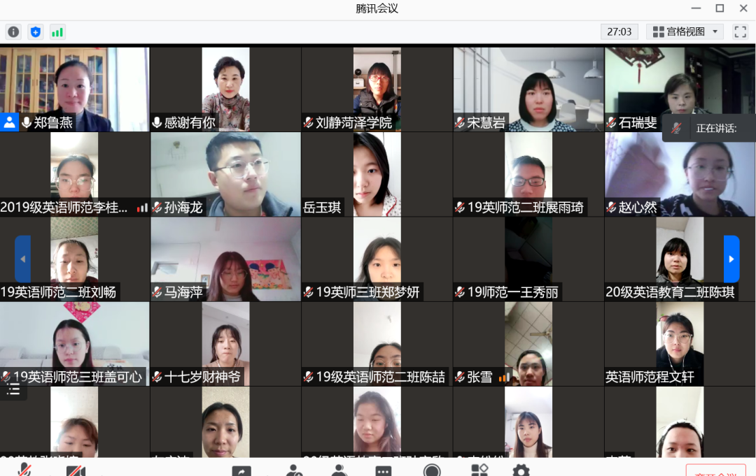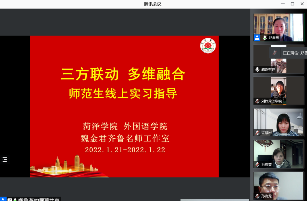 2022122日下午,伟德国际victor19462022年度“三方联动、多维融合”第二场师范生实习指导活动继续“云端”开讲。本次活动特邀魏金君“齐鲁名师”领航工作室石瑞斐、孙海龙两位优秀教师莅临指导。我院2019级、2020级全体英语师范生参加本次线上实习指导活动。伟德国际victor1946副院长李莉,英语系主任刘静,英语第二教研室主任、小学英语教育专业负责人宋慧岩和英语第一教研室主任李纷纷应邀出席。英语系副主任郑鲁燕主持本次活动。