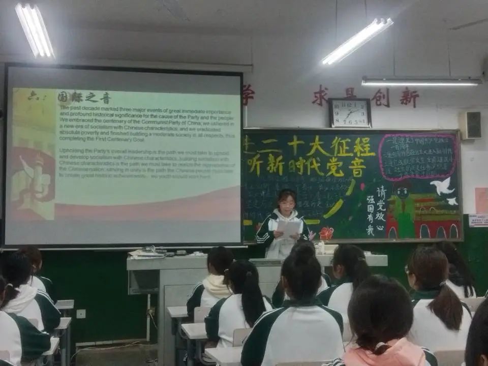 本次论坛内容丰富多彩,图文并茂,并设有庄严誓师、回视往昔以及人生引领等环节。首先,主持人以党的历史进程为切入点,带领学生回忆了中国工农红军在党的领导下完成二万五千里长征的伟大事迹,让学生领略到党和人民不怕困难、勇于牺牲、为民服务的伟大精神。随后,主持人播放党史视频,视频讲述了二十大报告中的新表述、新概括、新论断,并号召学生要以永不懈怠的精神状态和一往无前的奋斗姿态,全力跑好历史接力棒,为祖国的繁荣富强贡献青春力量。
